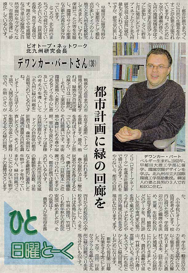 「都市計画に緑の回廊を」西日本新聞、2002年1月27日