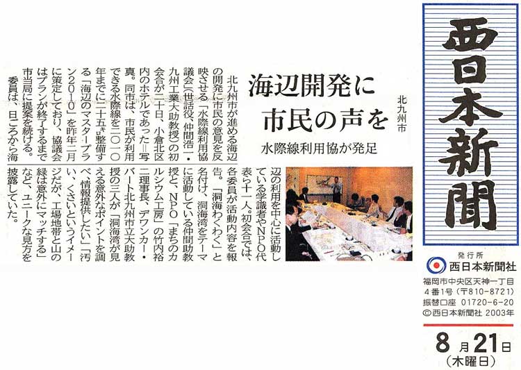 2003年8月21日、「海辺開発に市民の声を」、西日本新聞