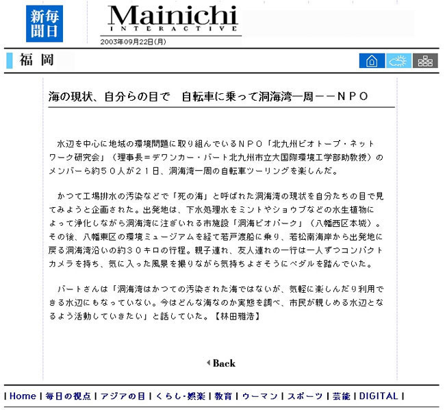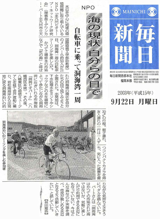 2003年9月22日、「海の現状自分らの目で」、毎日新聞