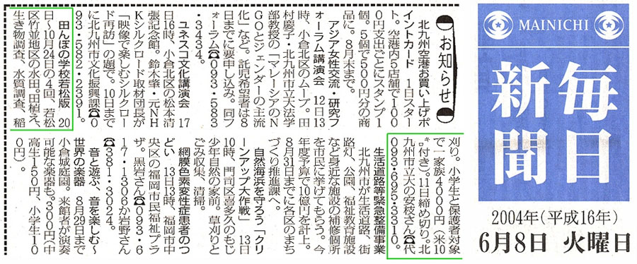 2004年06月08日、「田んぼの学校若松版」、毎日新聞