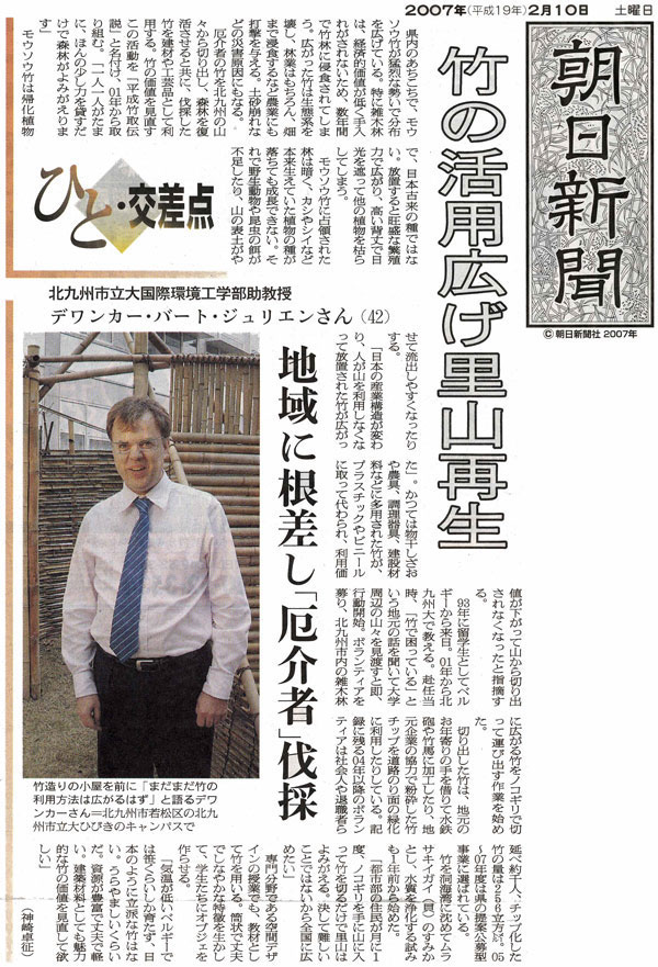2007年2月10日、「竹の活用広げ里山再生」、朝日新聞