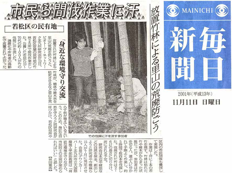 秋のイベント「竹林の保全と竹炭をつくろう」