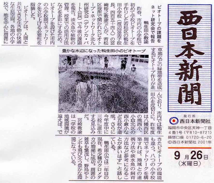 9月26日「ビオトープの課題をネット研究会で報告」西日本新聞