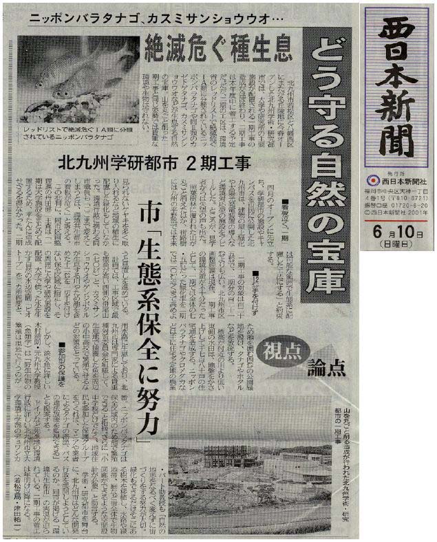 2001年6月10日 「どう守る自然の宝庫」西日本新聞